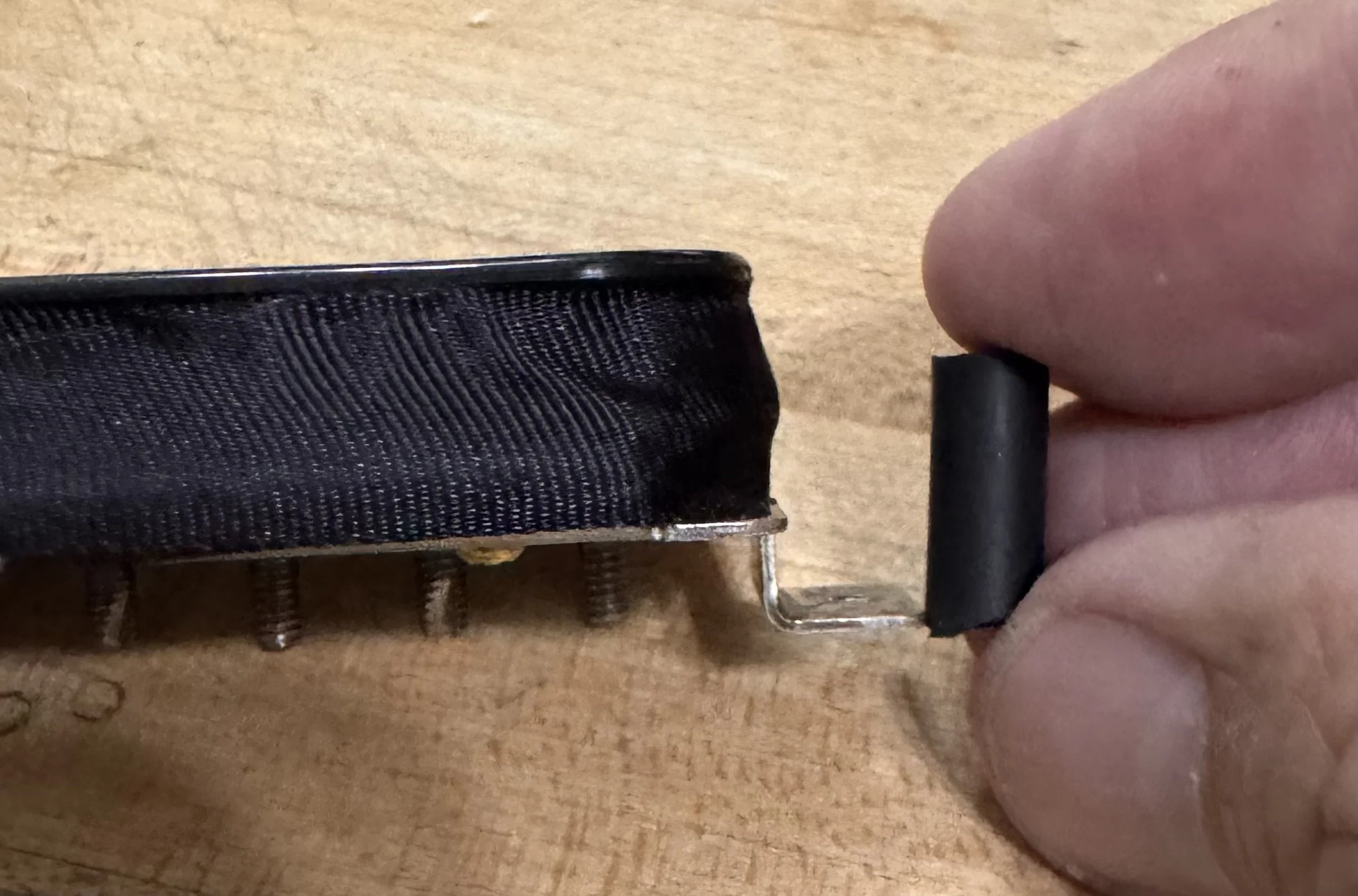 Screws are included for the pickups. Insert one through the top and slip the tube over it. A tool is included to help with this. If you think it’ll be easier with a bent tool you can hit it with a heat gun and bend it. Screw on the pickup with just a few turns to leave as much room as possible to install the second screw. The second screw will be harder to install because the pickup’s in the way. It’s easier to get the tube on the screw if you have it protrude from the tool so you can angle it towards the hole.