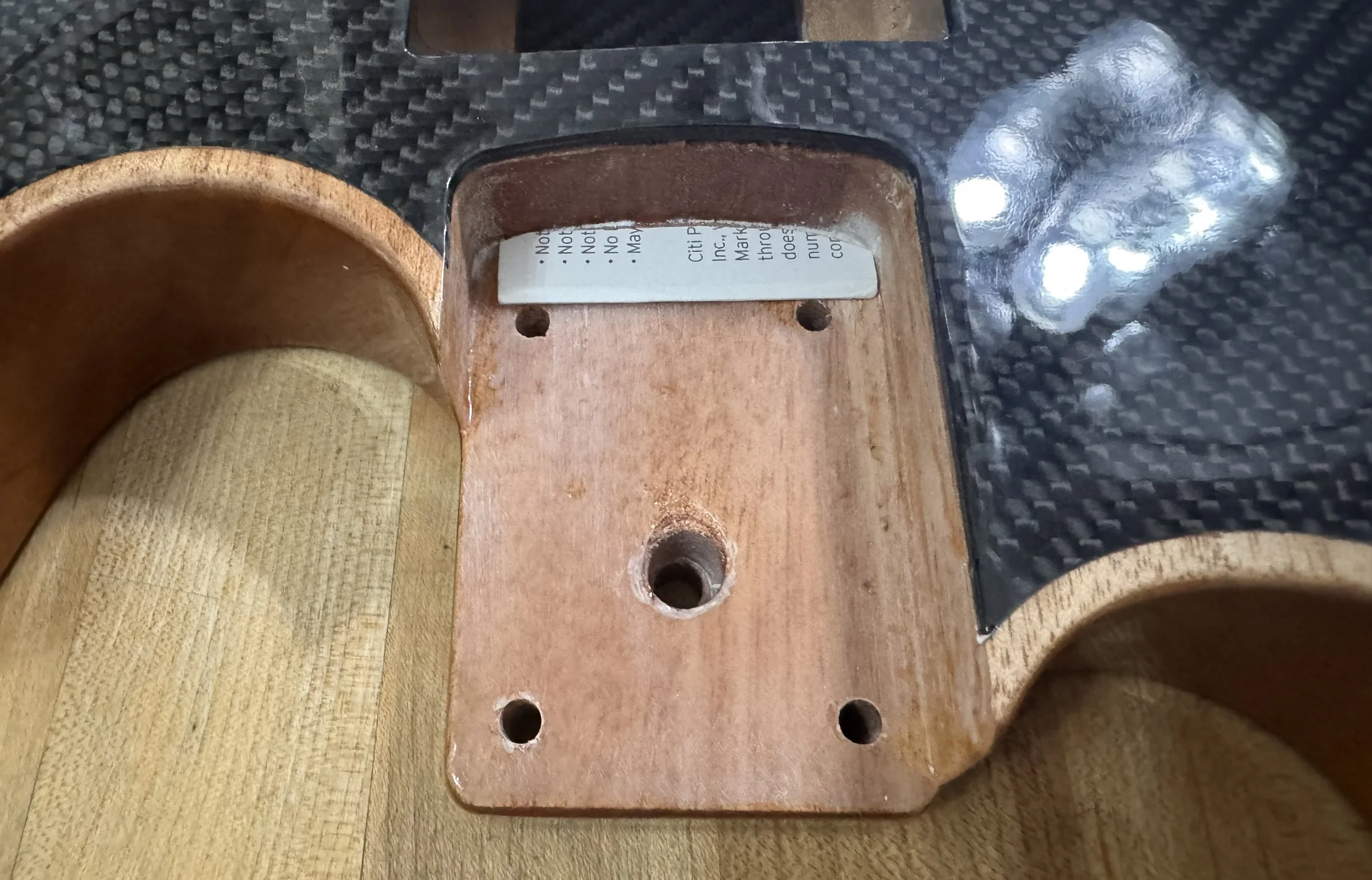 The neck pocket was designed to be snug to accommodate variations in necks. If your neck is wider then sand the pocket until the fit is snug but not too tight. Don’t force it or you could crack the pocket. Only sand on the bass side since the longer side wall has a tendency to angle the neck towards the treble side. As with all bodies of this style you may need to put pressure on the neck towards the bass side as you tighten the screws so the strings will be centered on the fretboard.